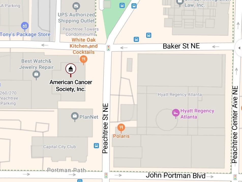 - Accessing the Meeting Space: The ACS office is located directly across the street from the Hyatt Regency Atlanta. When entering the building, you will check in with security in the main lobby on Peachtree Street. You will then take the elevators up to the 13th floor. When exiting the elevators, head towards the ACS main reception floor. We will have team members in place to assist you!